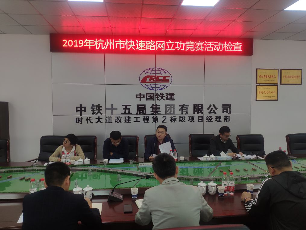 4月26日,杭州市快速路網(wǎng)建設(shè)領(lǐng)導(dǎo)小組辦公室負(fù)責(zé)人趙偉飛率市快速路網(wǎng)建設(shè)領(lǐng)導(dǎo)小組有關(guān)人員對(duì)時(shí)代大道改建工程進(jìn)行2019年快速路網(wǎng)建設(shè)項(xiàng)目立功競(jìng)賽專項(xiàng)檢查。建管公司總經(jīng)理?xiàng)钚l(wèi)軍,以及施工、監(jiān)理相關(guān)負(fù)責(zé)人陪同檢查。