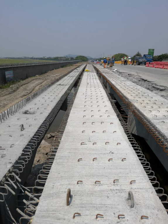5月12日,紅十五線改建工程施工現(xiàn)場(chǎng)紅旗招展,彩旗飄飄,在機(jī)器轟鳴中TJ2標(biāo)永豐直河橋梁板開(kāi)始架設(shè),標(biāo)志著該紅十五線項(xiàng)目上又即將新增一座拼寬橋梁。
