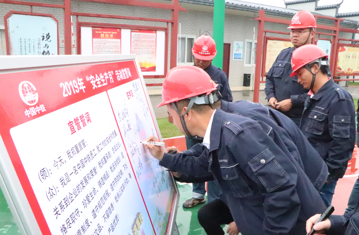 此次安全生產月動員會議,組織觀看了安全警示教育視頻,周圍懸掛安全宣傳標語,布置擺放各種安全知識的KT版宣傳海報,并組織建設員工莊嚴的宣誓,簽上自己姓名這種莊嚴的形式,督促警示更多的職工認識安全生產的重要性,為自己說出的承諾負責。通過系列活動,各參建單位學習氛圍十分濃厚,大家積極響應,在各自項目建設中,堅持安全責任不松懈,努力提高自身安全操作技能,為創建平安工程獻出自己的力量。
